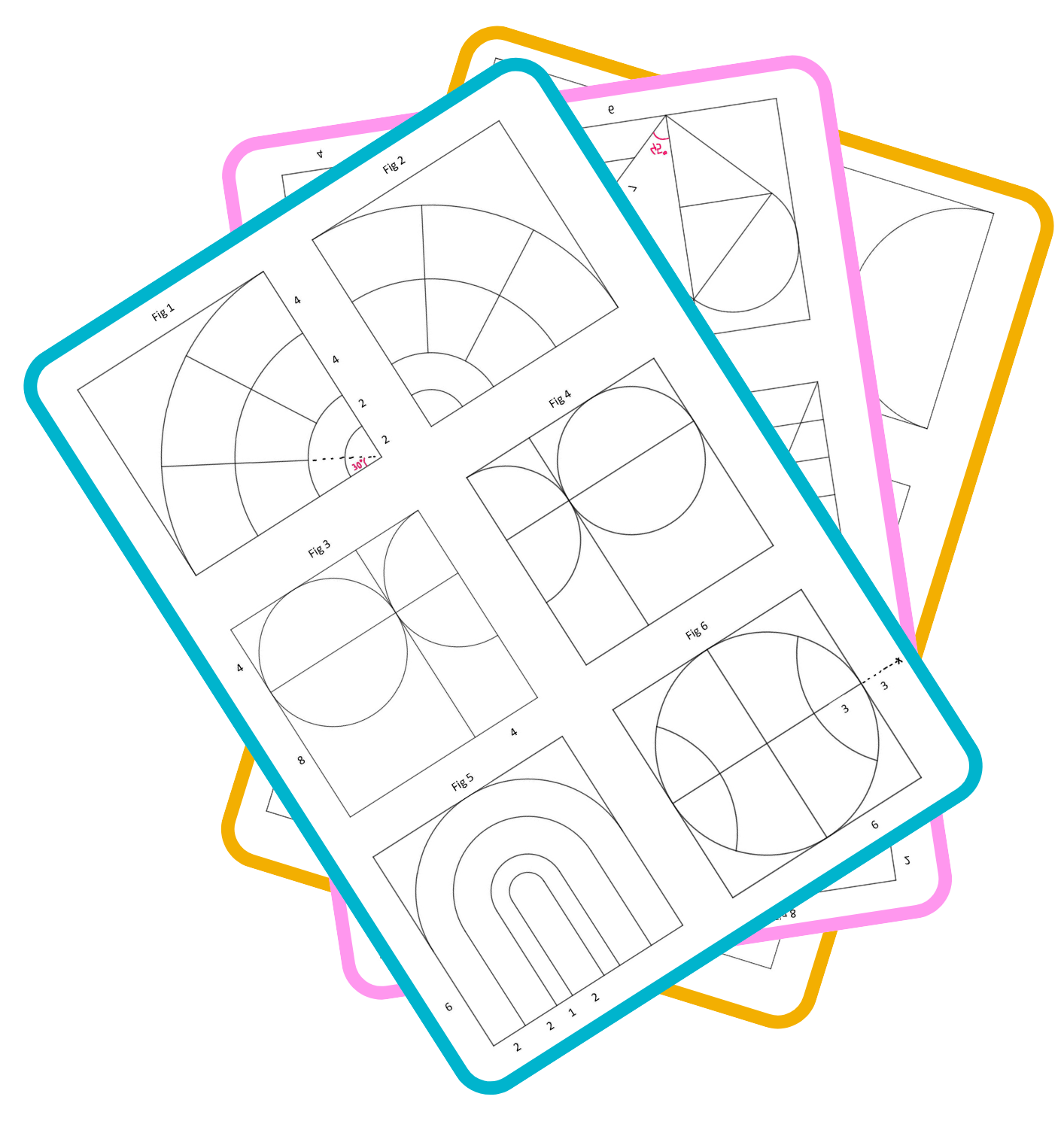 Les formes géométriques sont toutes construites à l’intérieur de carrés.