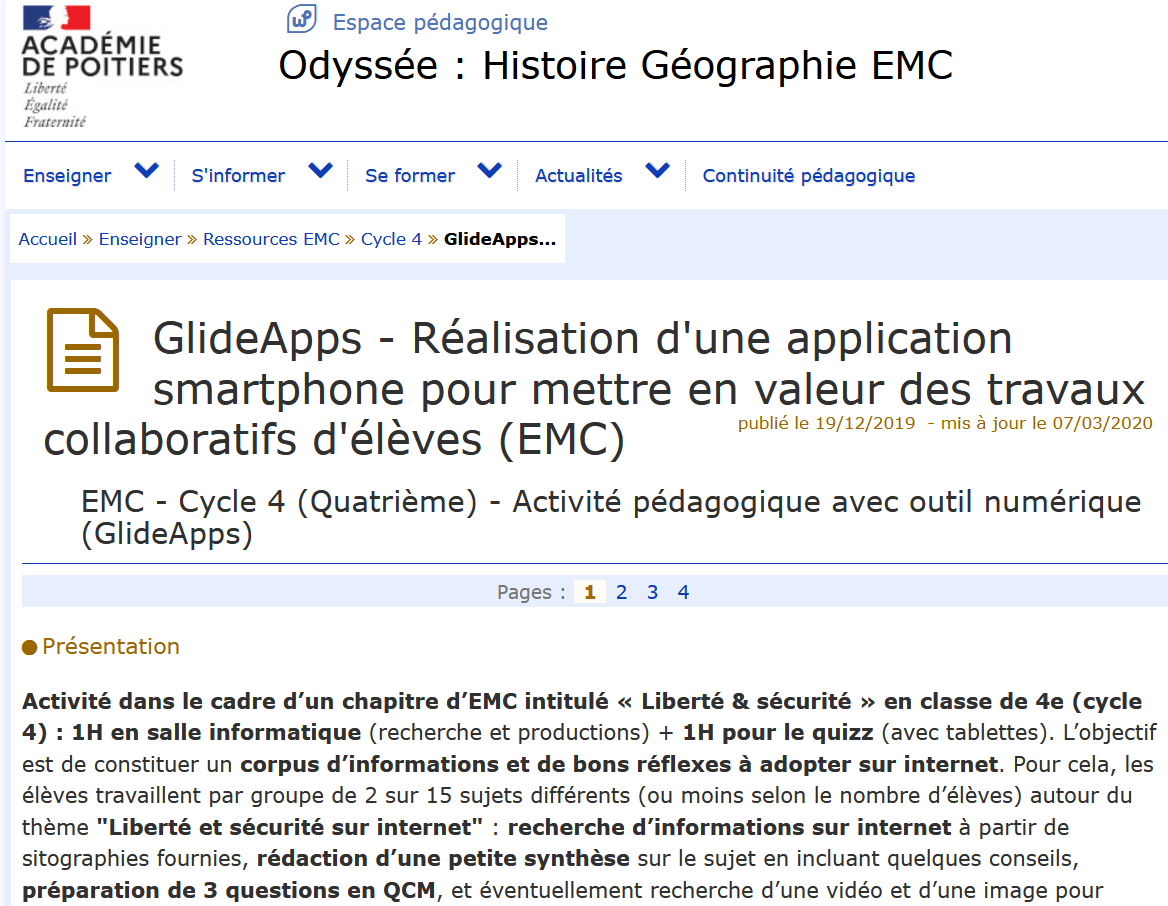 En cliquant sur l’image ci-dessous, vous trouverez la réalisation d’une application pour mettre en valeur les travaux des élèves en EMC dans l’Académie de Poitiers