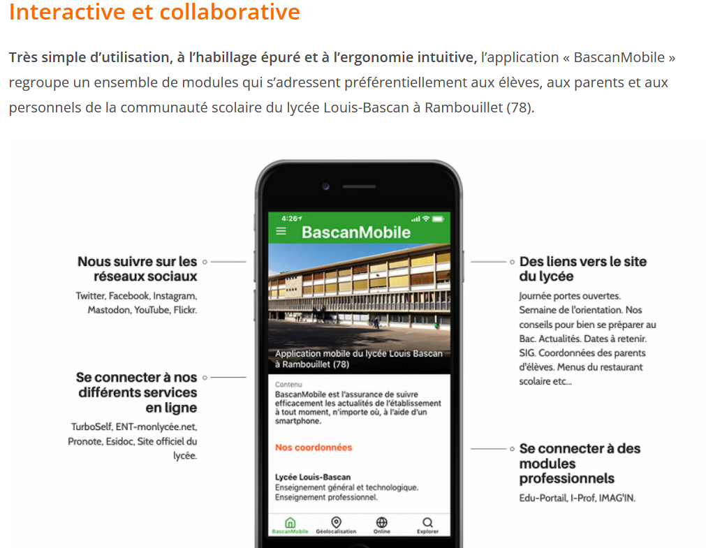 Création d’applications mobiles dans le cadre du virage numérique des lycées.