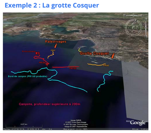 La Grotte de Cosquer - TransciptionImage Google Earth de la Grotte de Cosquer avec les tracés anciens |