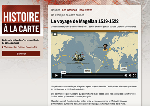 Utilisation du site Histoire à la Carte, une ressource interactive pour comprendre les étapes du voyage de Magellan.