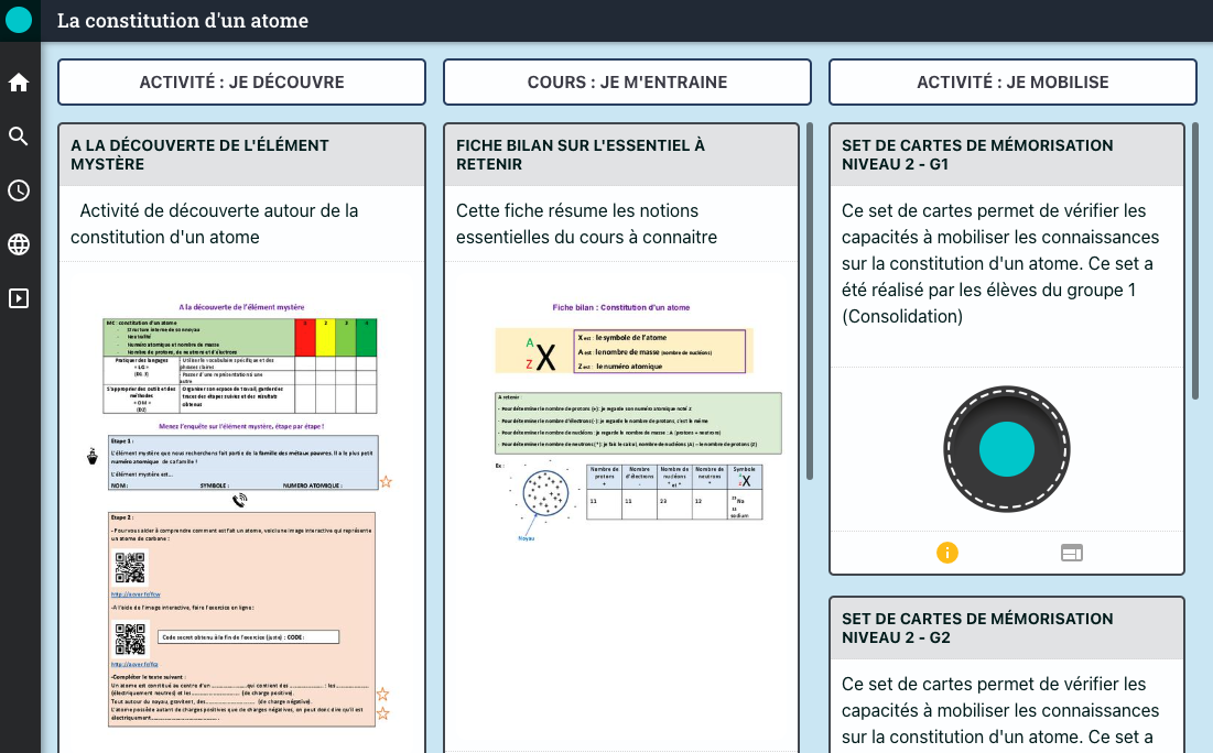 Audrey Campbell, enseignante de Physique-Chimie au collège Les Sablons à Viry-Chatillon et membre du GEP, a proposé à ses élèves de 3ème prépa métier une séquence pédagogique afin de les aider à mieux comprendre et apprendre les notions autour de la constitution de l’atome. Pour cela, elle a utilisé trois ressources numériques qui sont Genially, Learning Apps et La Digitale.