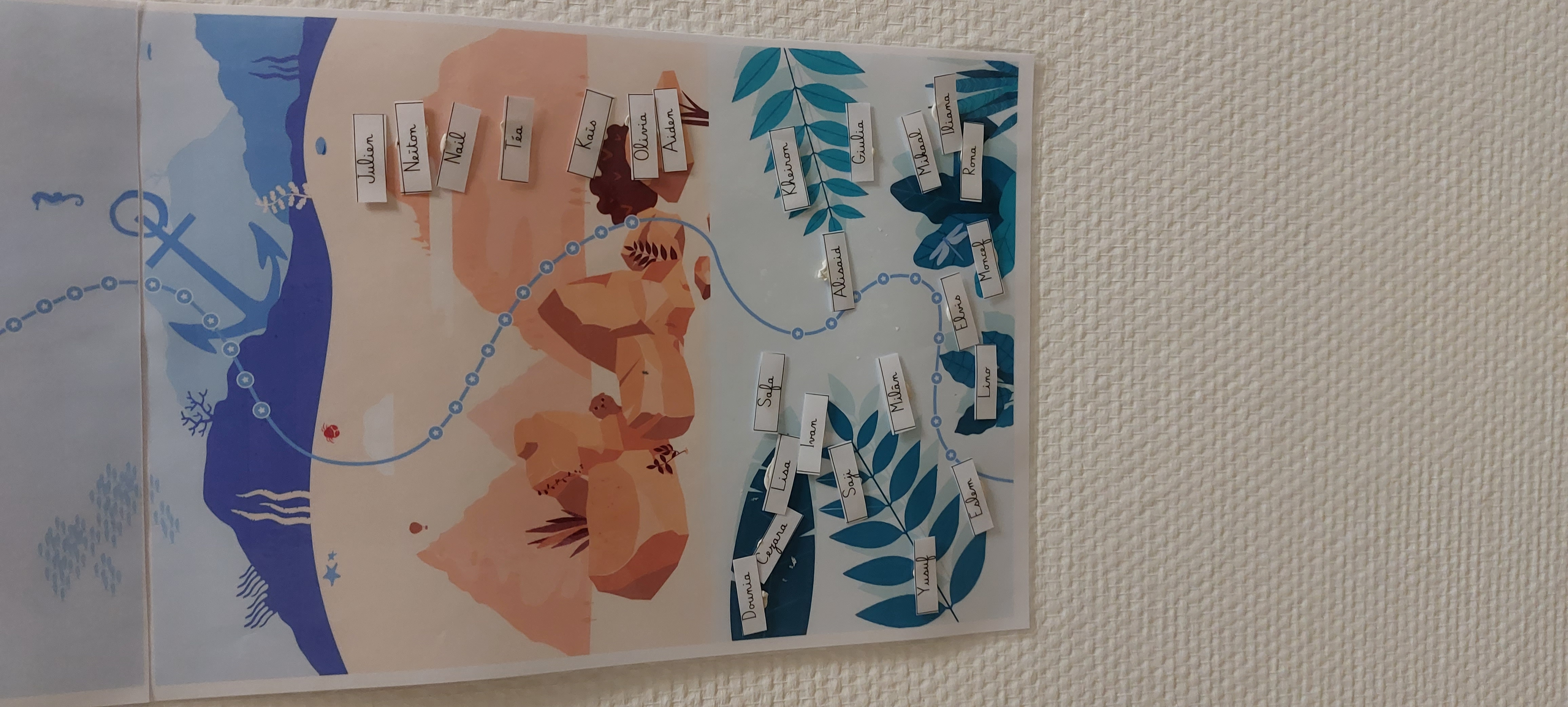 Mais elle a également mis en place, en classe, une carte représentant les mondes de Lalilo, sur lequel les élèves déplacent leur prénom en fonction de leur progression dans les différents univers.
