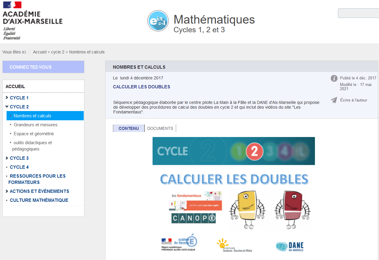 En cliquant sur l’image ci-dessous, vous trouverez un exemple de l’Académie d’Aix-Marseille pour comprendre la construction des procédures pour calculer le double d’un nombre.