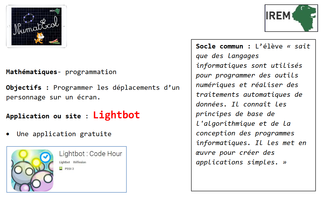 En cliquant sur l’image ci-dessous, vous trouverez un exemple d’usage de programmation en mathématiques par l’Irem de Lyon.