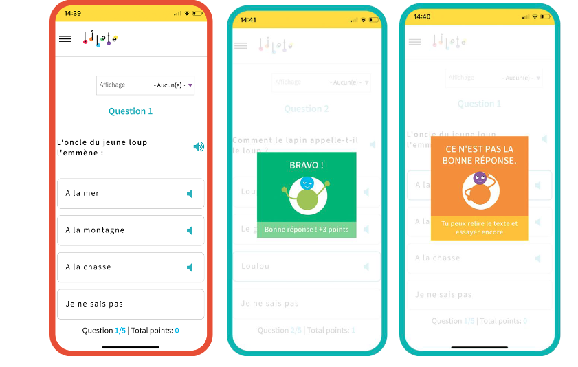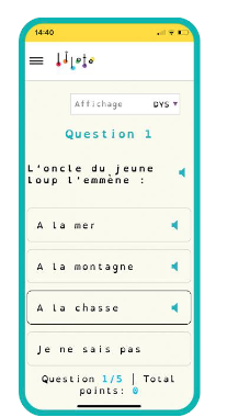 Grâce à des quiz ludifiés accessibles au format écrit ou audio, les élèves peuvent tester leur niveau de compréhension du texte.