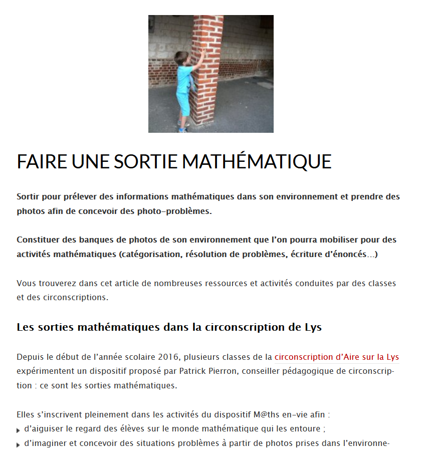1) Mettre en place un débat avec les élèves :"Une sortie mathématiques, que veut dire "mathématiques" ?