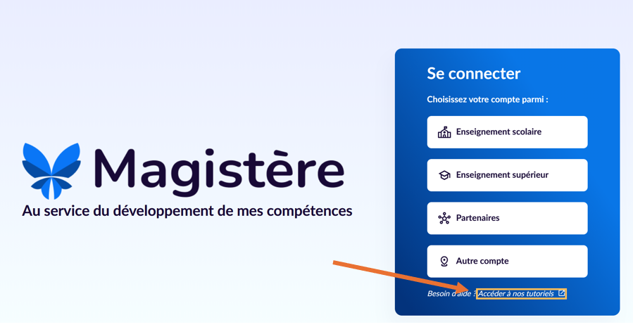 lien vers les tutoriels directement sur la page d’accueil de la plateforme Magistère sous les méthodes de connexion