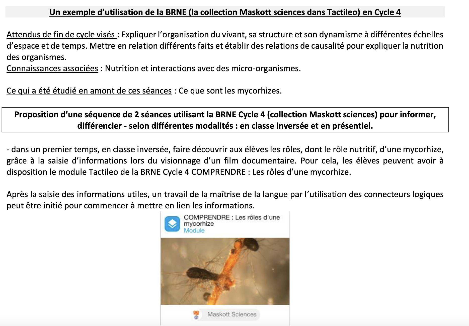 Le site SVT de l’Académie d’Amiens propose un exemple d’utilisation de la ressource Maskott. La séance s’organise avec un temps en distanciel et un temps en présentiel avec pour objectif d’établir des relations de causalité pour expliquer la nutrition des organismes. Plus de détails en cliquant sur le site de l’Académie d’Amiens.