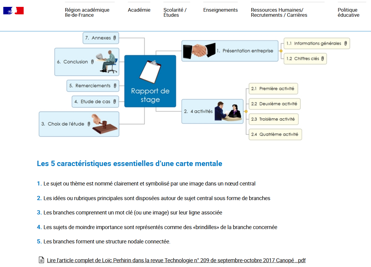 En cliquant sur l’image ci-dessous, vous trouverez un article de présentation de carte mentale par l’académie de Paris.