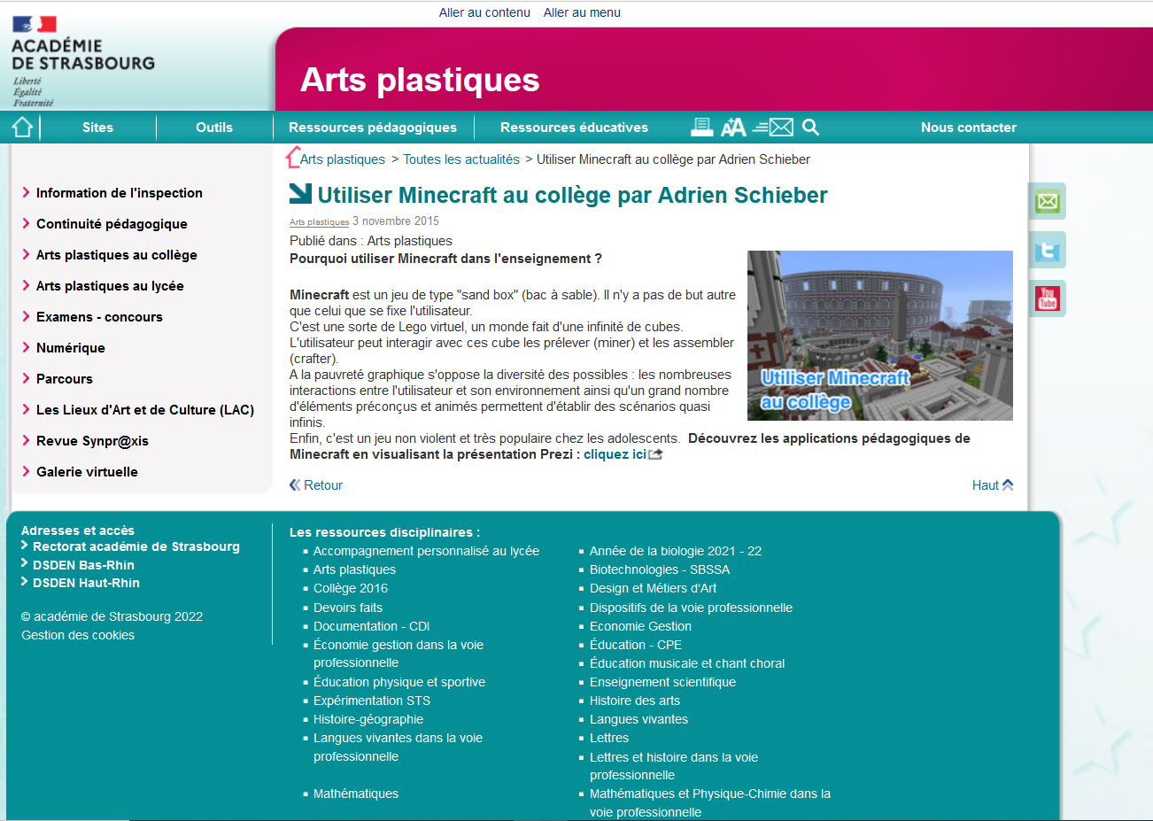 En cliquant sur l’image ci-dessous, vous trouverez un article présentant l’application Minecraft en arts plastiques au collège.