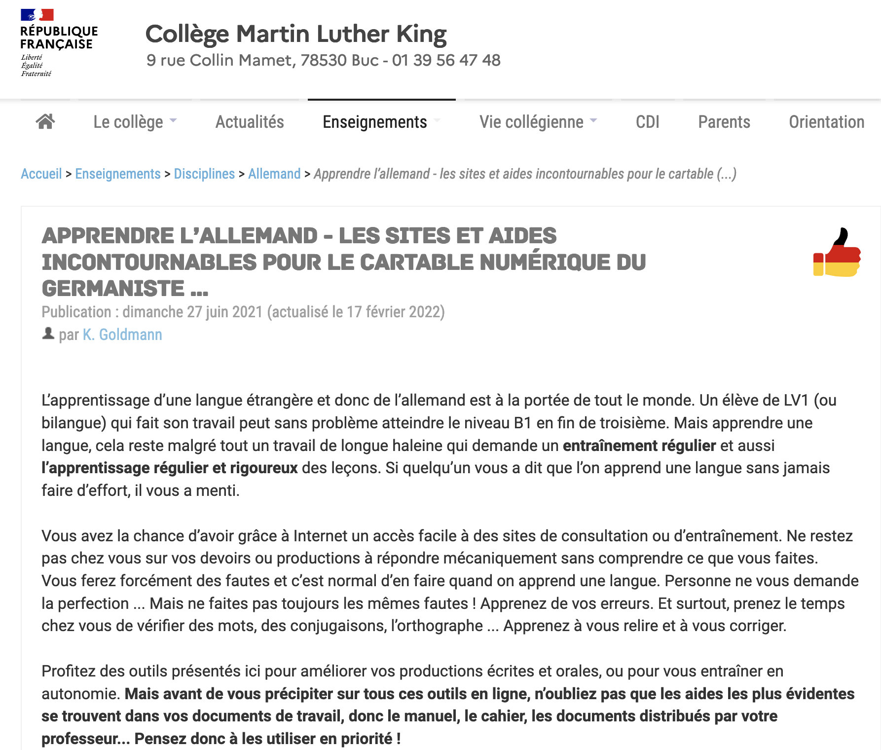 En plus d’être un dictionnaire et un entraineur de vocabulaire, Mobidico permet également à l’utilisateur de créer ses propres cartes de mots. Plusieurs établissements utilisent cette ressource comme le collège G.Brassens à Épouville où le professeur d’allemand a proposé aux élèves et aux familles un kit de vocabulaire pour accompagner l’échange franco-allemand. Retrouvez l’ensemble de cette pratique sur le site de l’académie de Rouen