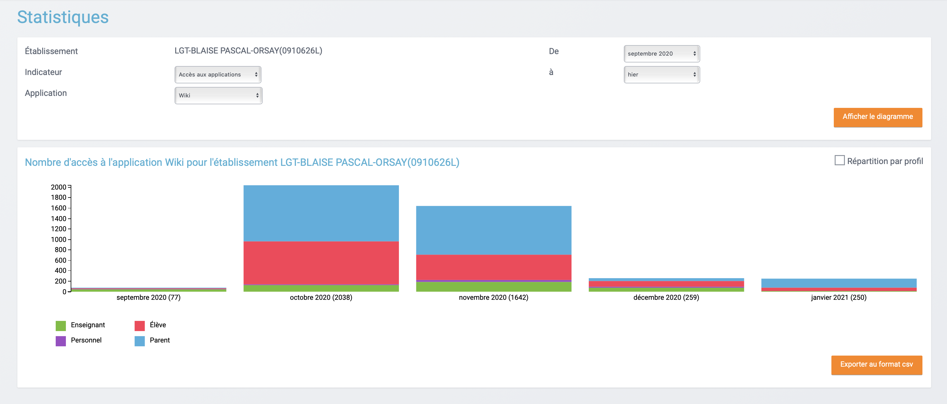 Les différentes procédures sont documentées dans cet espace, me libérant ainsi du temps pour faire des accompagnements sur les usages pédagogiques. Passée la période du début d’année scolaire, le nombre de pages créées se stabilise. La fréquentation des wiki reste importante notamment par les familles.