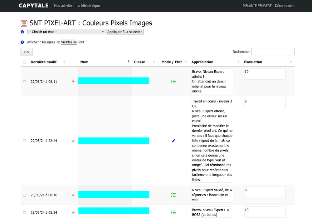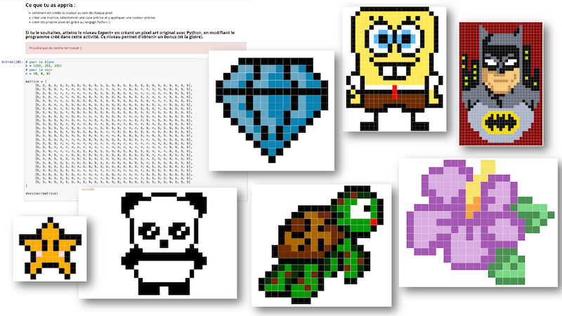 L’outil Notebook de Capytale a aussi été utilisé pour une séance en classe sur le Pixel Art avec Python.