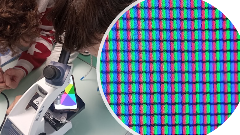 La dernière demi-heure est consacrée à une observation de l’écran de leur smartphone au microscope pour découvrir les pixels des écrans et le codage des couleurs.