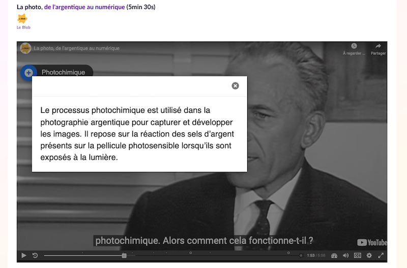 Vidéo arrêtée sur une définition d’un processus photochimique.