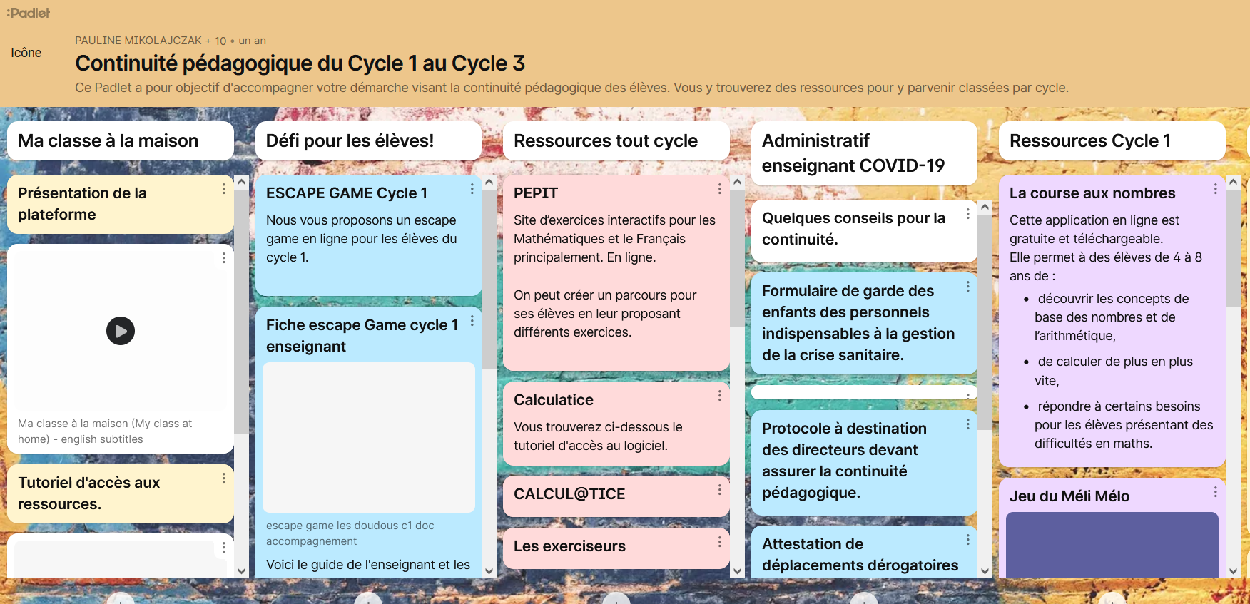 Usage de Padlet pour des ressources en primaire