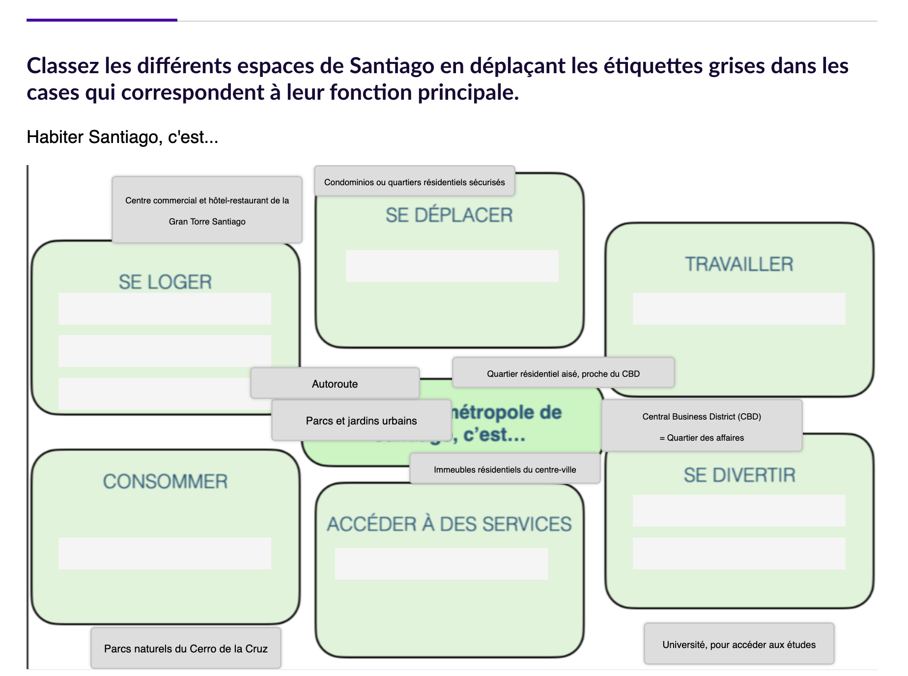 La plateforme Éléa est utilisée au collège et au lycée, avec des parcours conçus pour tous les niveaux de classe. Nous vous proposons ci-dessous un exemple d’activité en géographie pour une classe de 6ᵉ, portant sur la réalisation d’un croquis de paysage de Santiago du Chili.