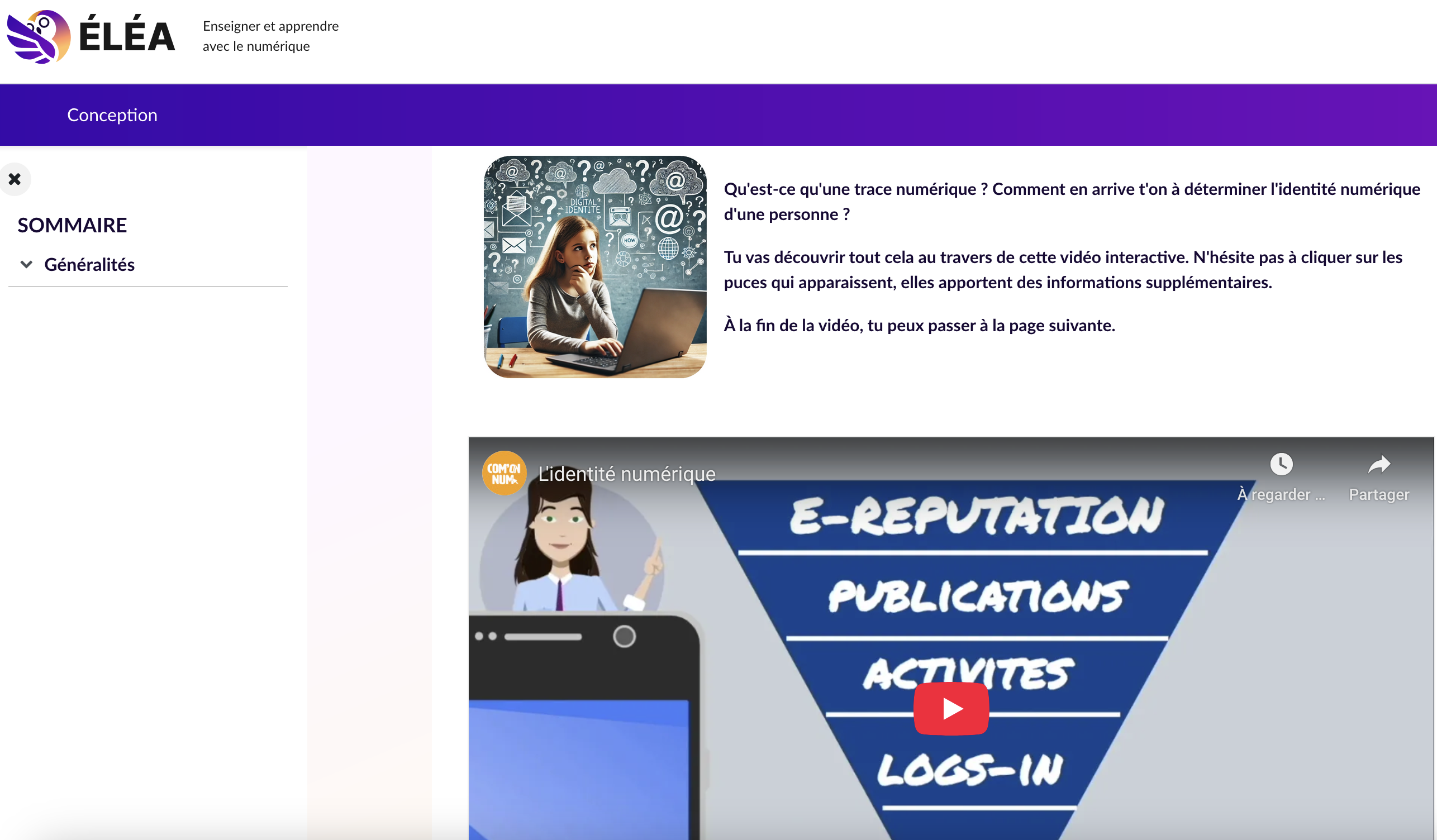 Ce parcours peut être utilisé de façon autonome par les élèves, ou intégré à un cours d’EMI (Éducation aux médias et à l’information) ou d’EMC (Enseignement moral et civique). L’accès se fait via la plateforme Éléa, depuis l’ENT, ce qui garantit un suivi individualisé et le respect des données personnelles.