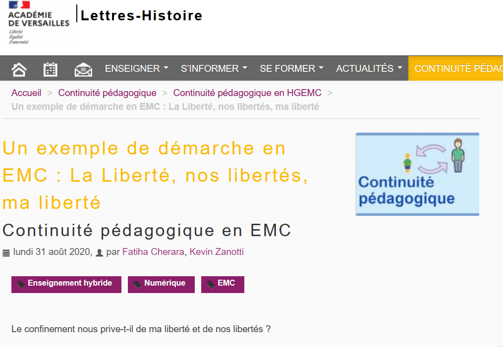 En cliquant sur le lien ci-dessous, vous trouverez un exemple de démarche en EMC réalisé dans l’Académie de Versailles :