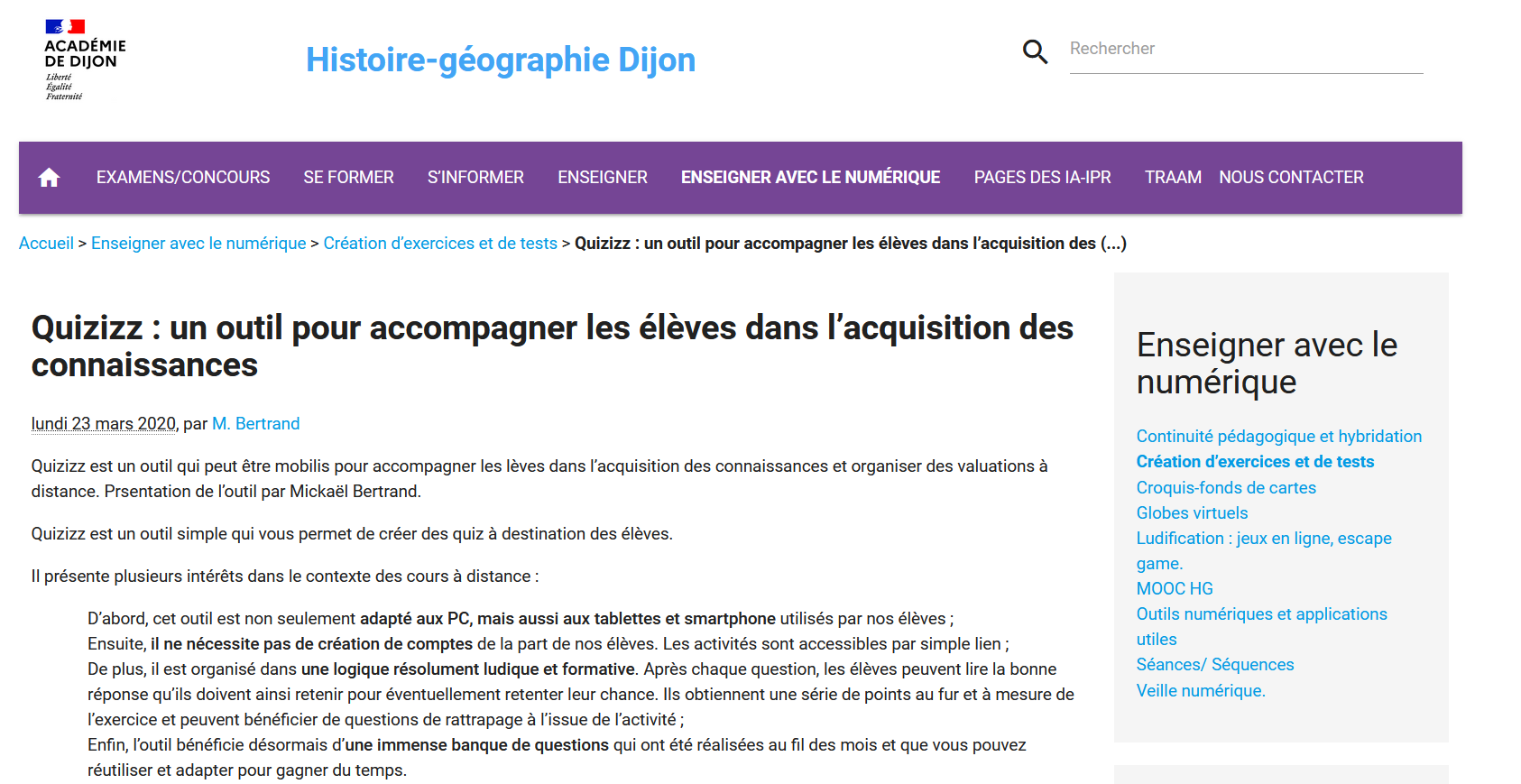 En cliquant sur l’image ci-dessous, vous trouverez une présentation d’utilisation en Histoire-Géographie réalisé par l’académie de Dijon.