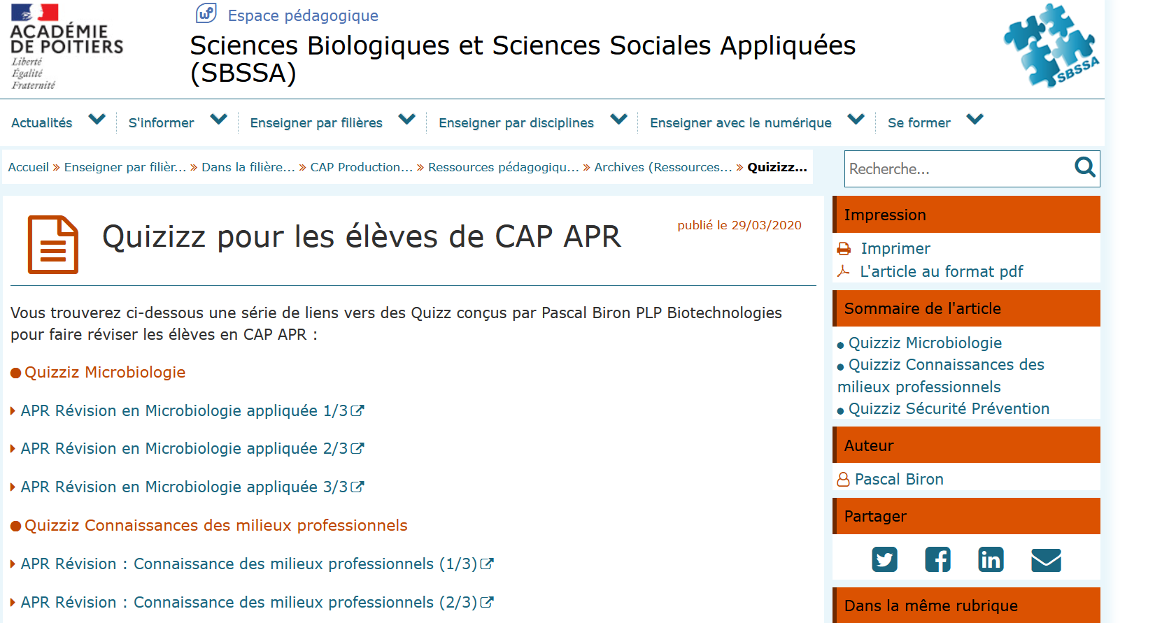 En cliquant sur l’image ci-dessous, vous trouverez des exemples de quiz en Biotechnologies réalisés par l’académie de Poitiers.