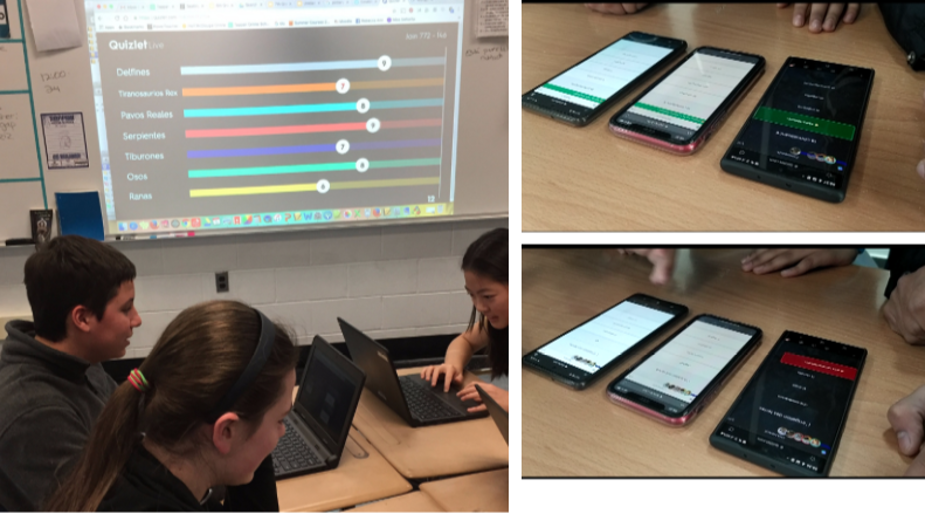 Elle intègre également Quizlet Live dans ses cours d’espagnol pour introduire une dimension collaborative et compétitive à l’apprentissage du vocabulaire. Quizlet Live est un jeu en équipe qui encourage l’interaction entre les élèves tout en renforçant leur maîtrise du vocabulaire espagnol. Les élèves sont regroupés par équipe et se connectent par leurs téléphones grâce à un QRCode.