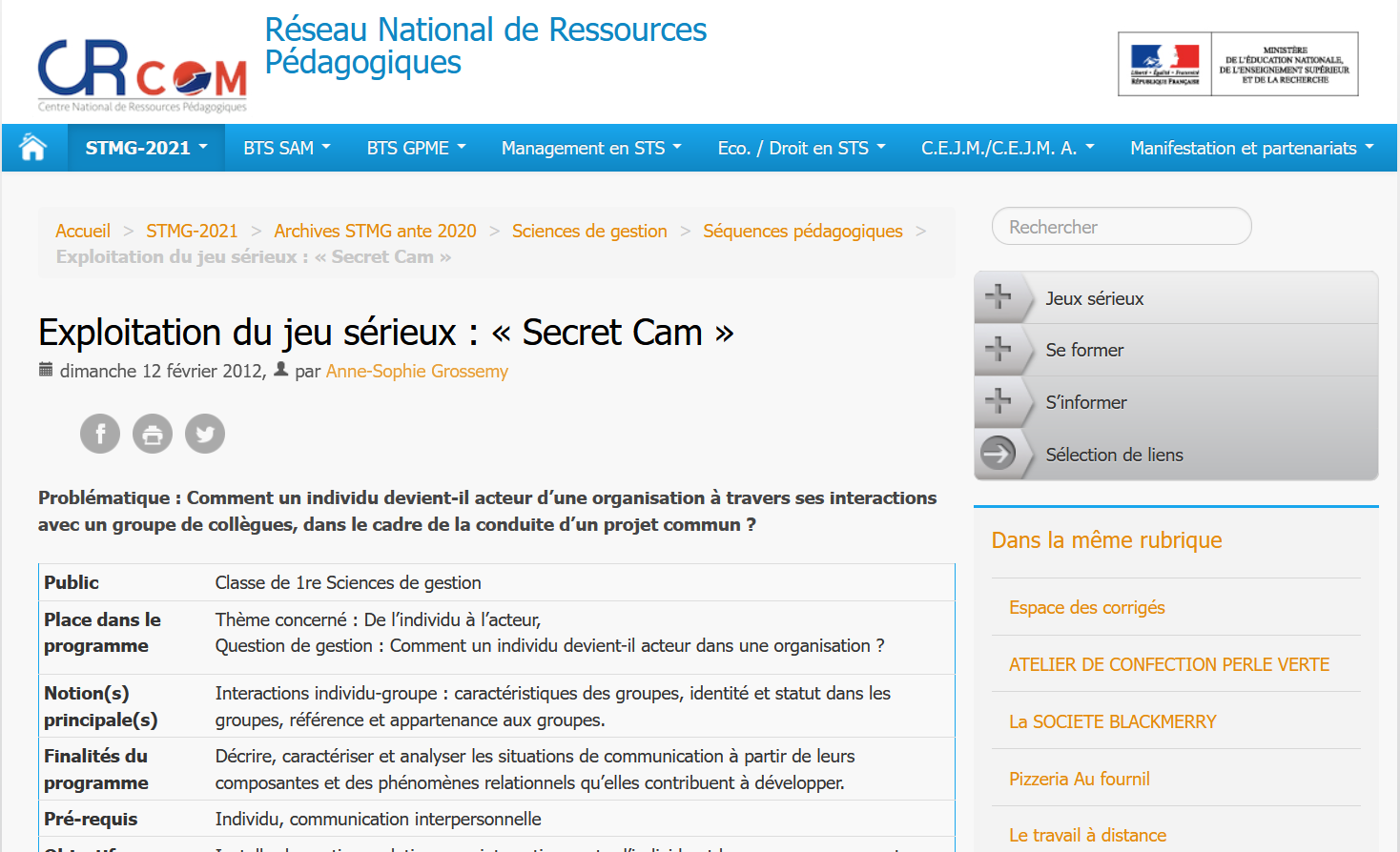 En cliquant sur l’image ci-dessous, vous trouverez un scénario publié par l’académie de Versailles en STMG 1ère SDG.