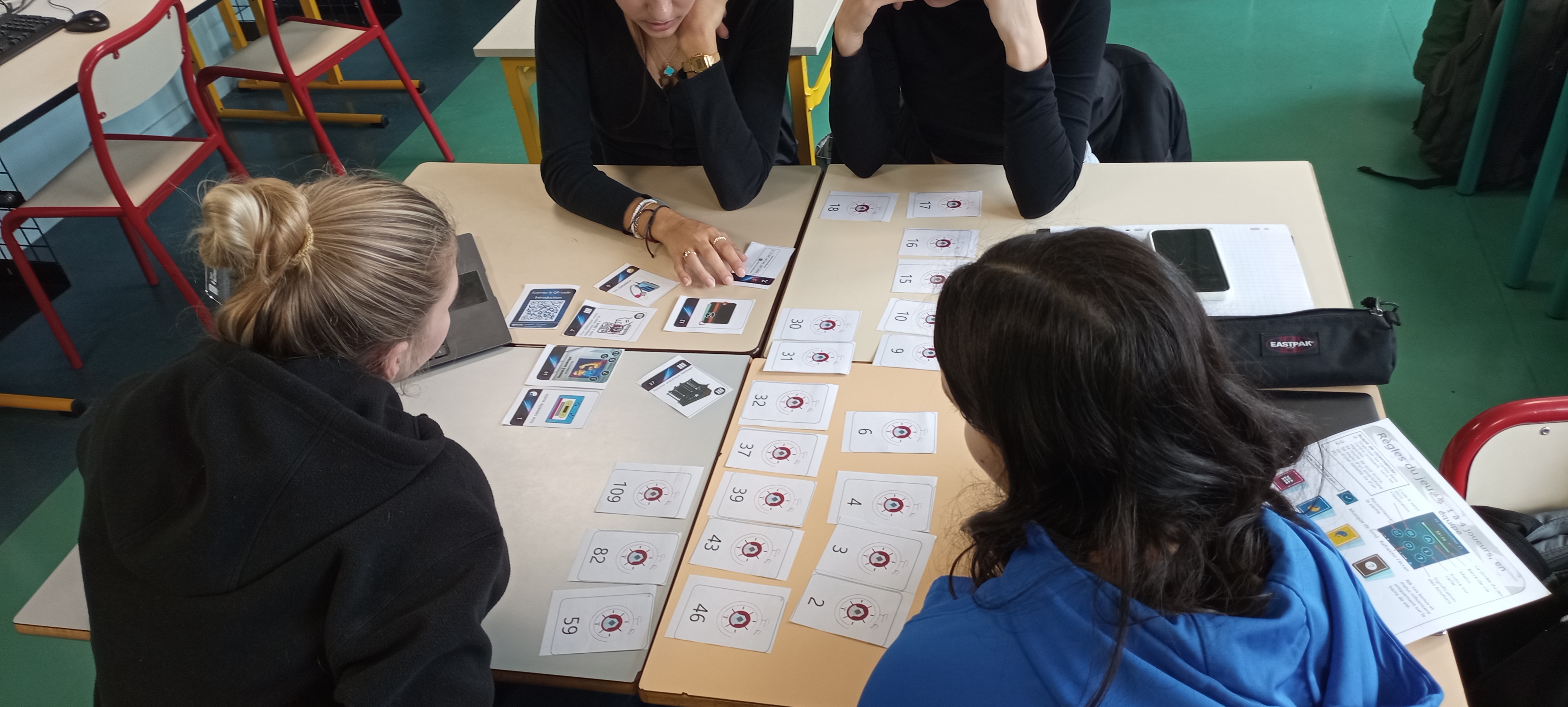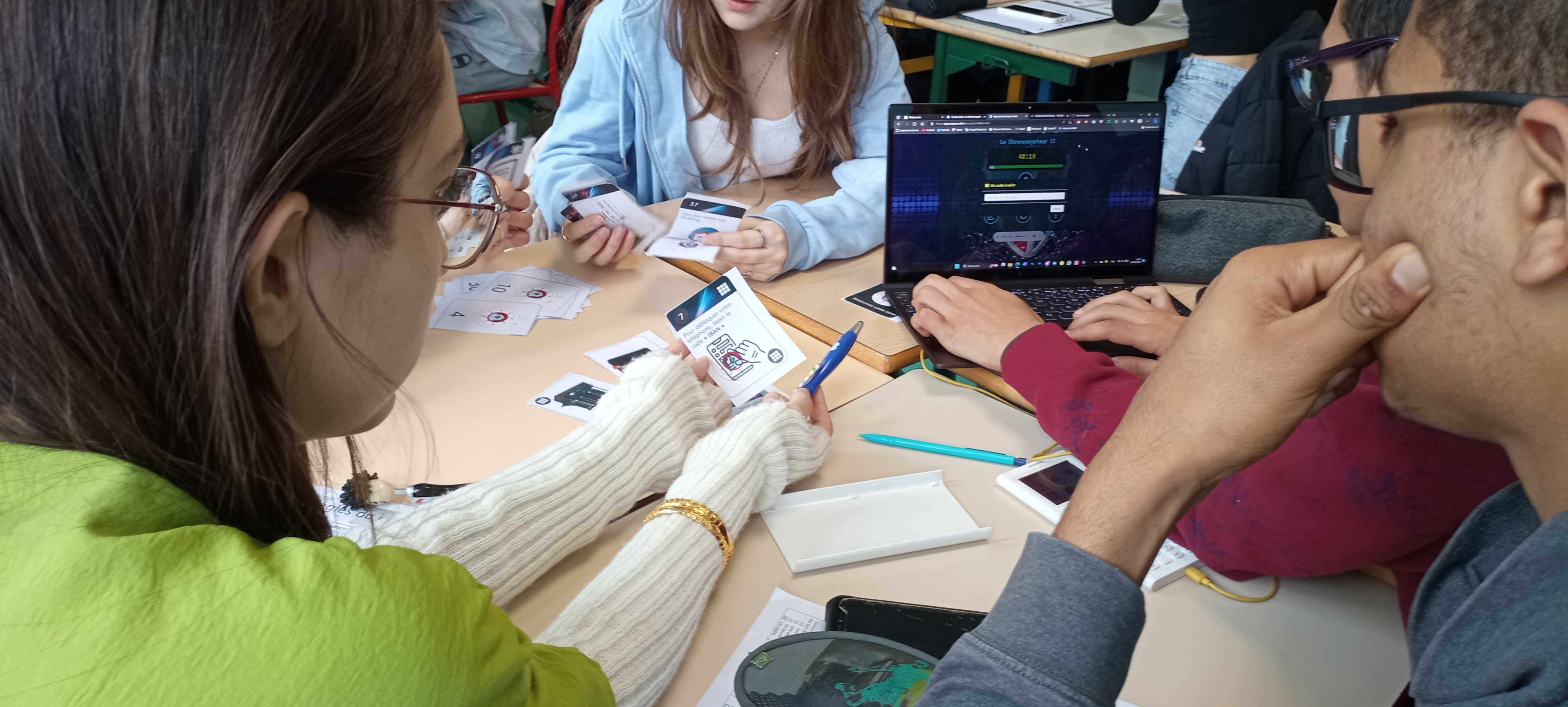 Dans un premier temps, les élèves participent à un jeu d’évasion mettant en scène une cyberattaque sur leur smartphone lors de la visite d’une exposition sur les femmes et le numérique. Ils sont amenés à résoudre différentes énigmes leur permettant de mettre en œuvre des compétences du domaine 4 du CRCN.