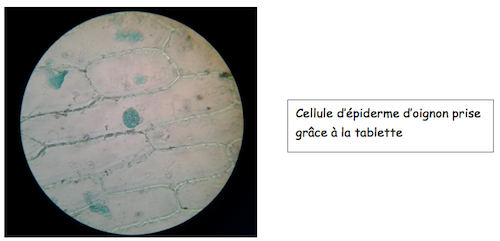Un des intérêts ici de la tablette est, en posant simplement l’objectif de l’appareil photo sur l’oculaire du microscope, de pouvoir prendre une photo de l’observation réalisée.