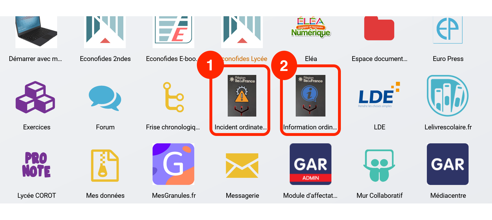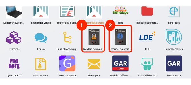 Capture d’écran ENT Monlycée.net : liste des applications - Transciption