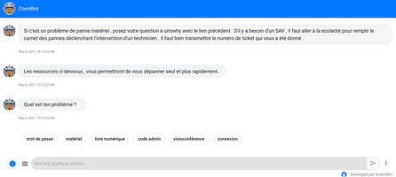 Le chatbot COROT est capable d’informer sur certains thèmes comme :