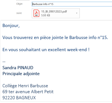 Extrait du livret de rentrée du Collège Henri BARBUSSE, Bagneux