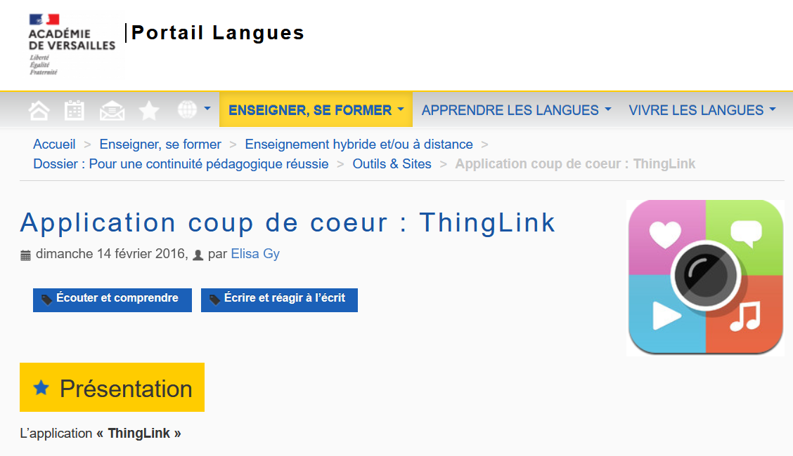 Vous trouverez un exemple d’usage sur le portail langues de l’académie de Versailles en cliquant sur l’image ci-dessous :