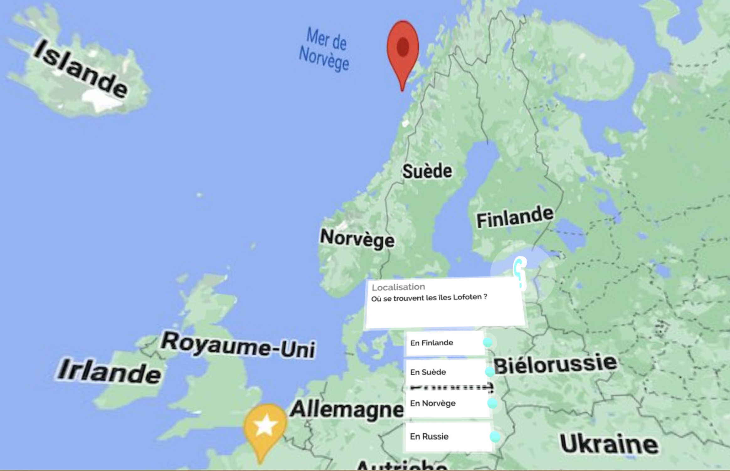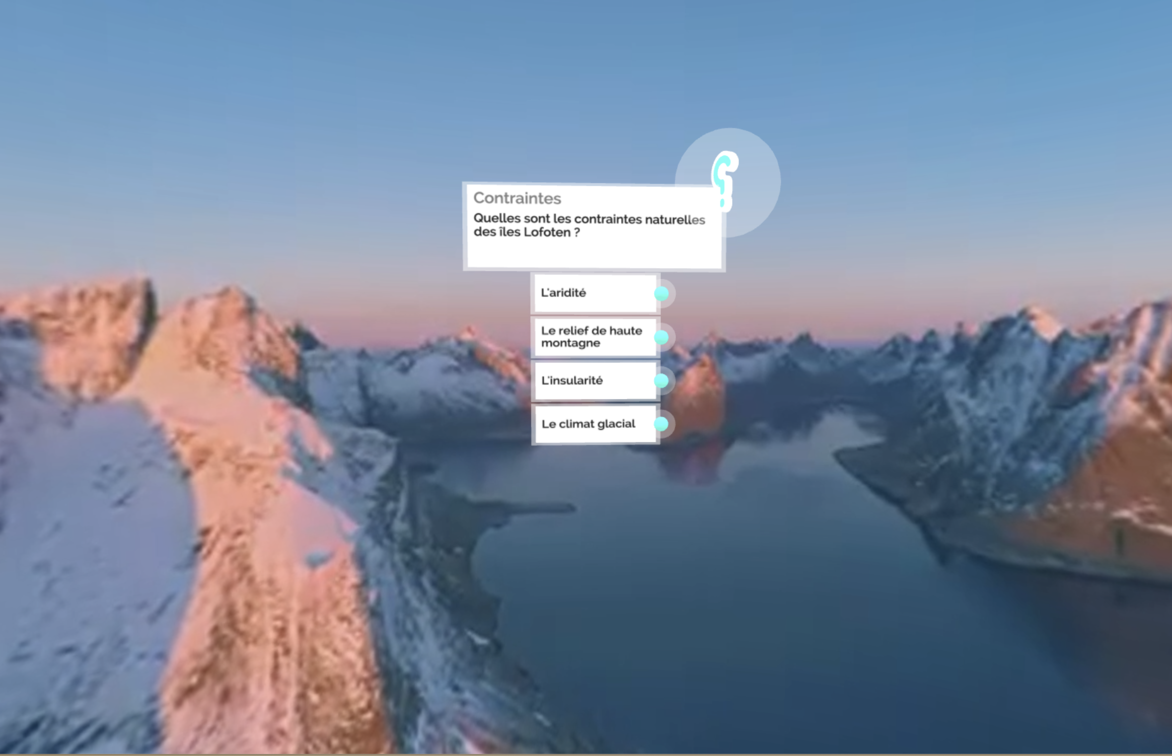 Visuel du paysage norvégien augmenté d’une question à choix multiple.