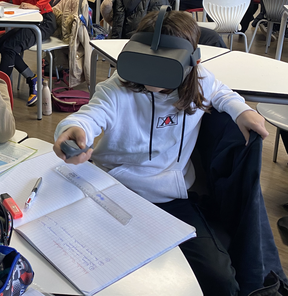 Les casques de réalité virtuelle permettent aux élèves de visiter virtuellement différents espaces du globe afin d’appréhender de façon beaucoup plus concrète les études de cas du programme et de travailler certaines compétences comme « se repérer dans l’espace » ou encore « analyser et comprendre un document ».