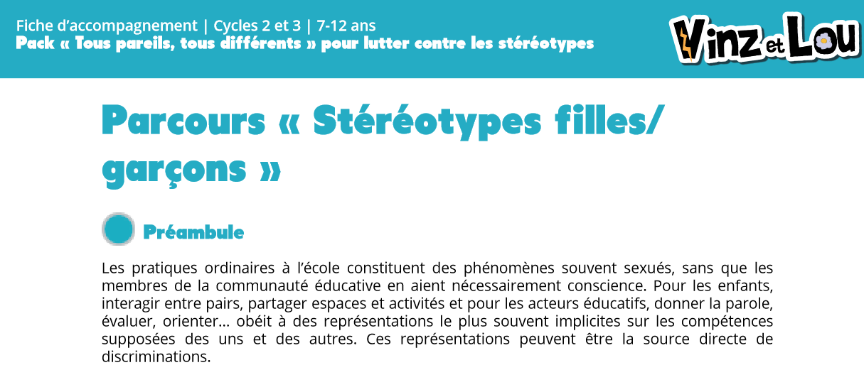 Vous trouverez un exemple : dans le thème filles/garçons -> stéréotypes filles/garçons en cliquant sur l’image ci-dessous :