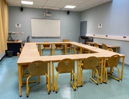 - 16 places assises autour d’une table en forme de carré (adaptable aux besoins)