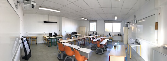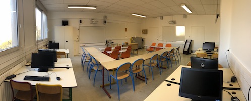 La 2è salle de formation B220 plus petite peut permettre de réaliser des travaux de groupe (présence d’un tableau blanc et d’un vidéo-projecteur).