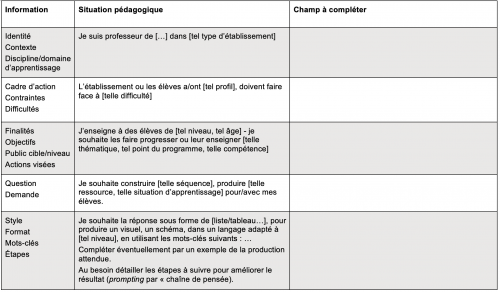Matrice de création d’un prompt dans un cadre pédagogique - Transciption