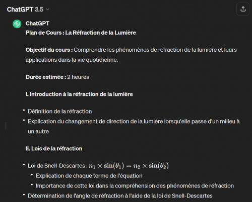 Je souhaite générer un plan de cours intitulé : « La réfraction de la lumière ».