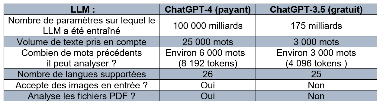 Pour le LLM ChatGPT-4 (payant)
