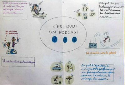 Photo de l’affiche : « C’est quoi un podcast ? » réalisée par les élèves