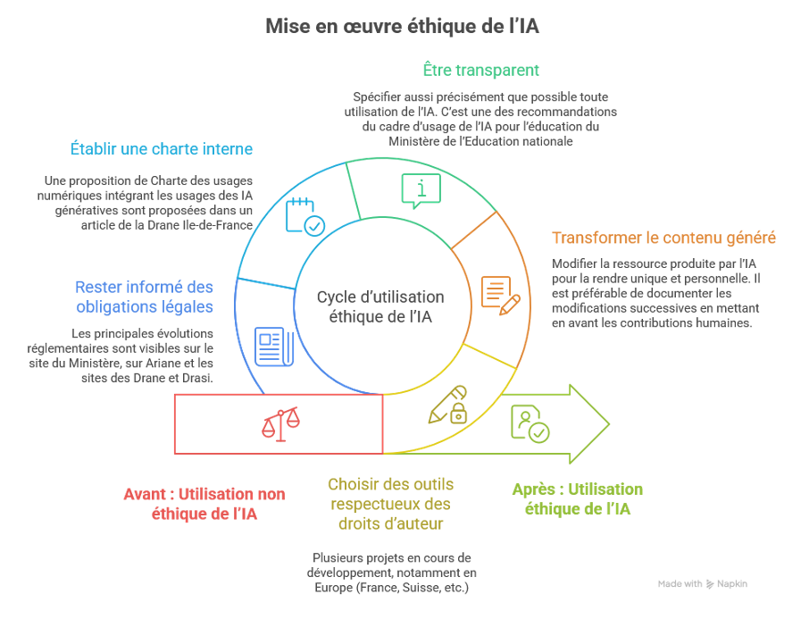 Pour avoir une utilisation éthique de l’IA générative sur la question du droit d’auteur, nous vous proposons la démarche suivante :