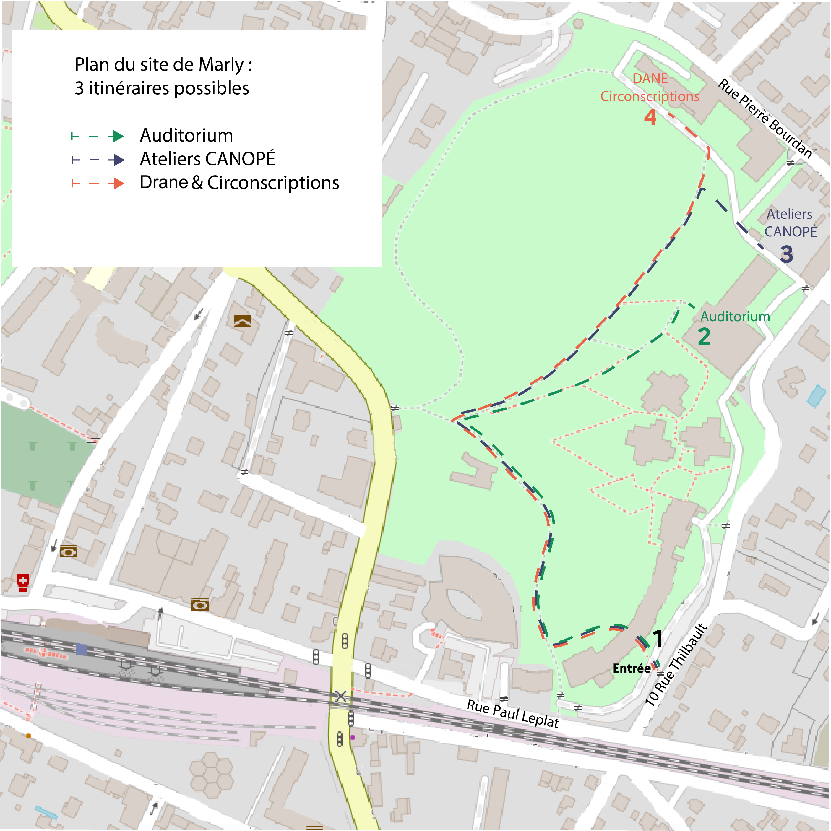 L’entrée se fait par l’internat d’excellence. Suivre le trajet indiqué ci-dessous pour vous rendre sur les lieux dédiés à la Drane.
