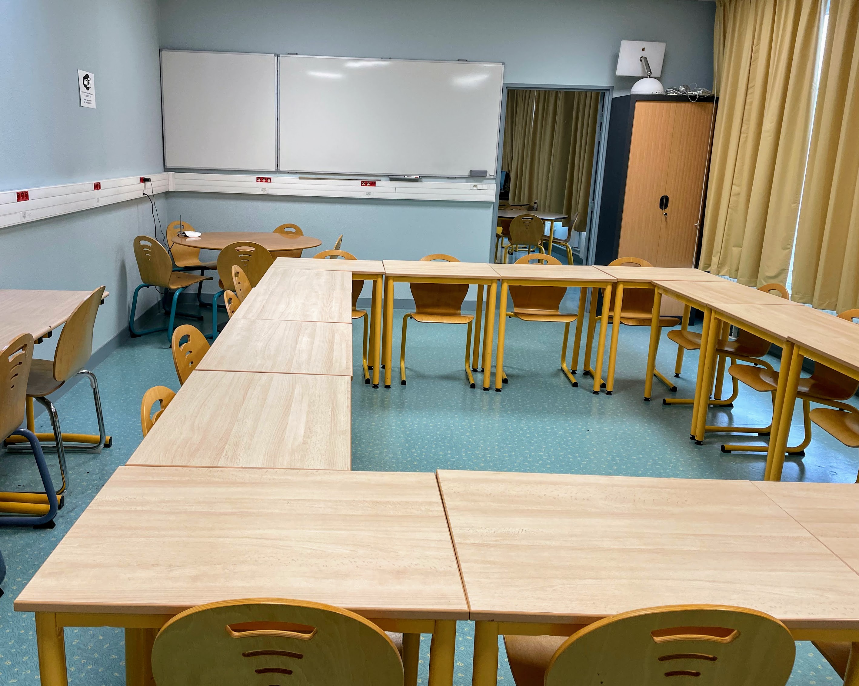 Une grande salle de formation et une petite salle de réunion, toutes deux bien équipées. Dans cet article, nous nous concentrons sur la petite salle. Pour découvrir la grande salle de formation, consultez l’article dédié.
